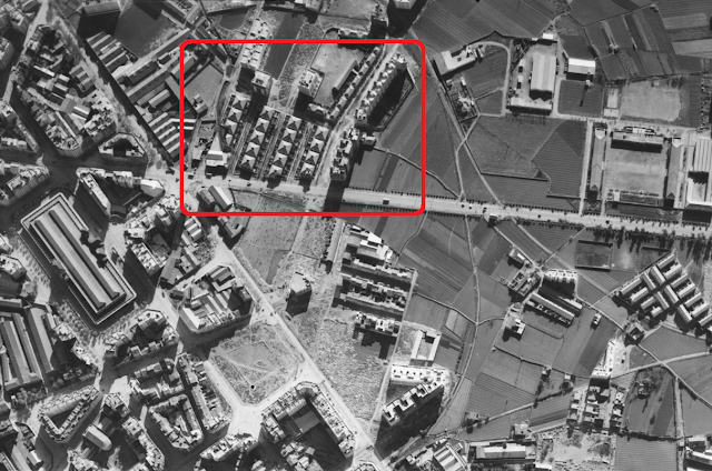 A partir de que en el año 1921, ya han pasado cien años, se constituyera la Cooperativa de Casas Baratas de la Dependencia Mercantil se adquirieron terrenos de huerta en la zona que hoy es el enclave de Patraix, justo en la zona que hoy queda entre Avenida Pérez Galdós y Archiduque Carlos, mucho antes de la proyectada y construida avenida del Cid, entre los años veinte y treinta del pasado siglo se empezaron a construir varias calles de viviendas, una gran barriada alentada por la Cooperativa que inicialmente era un barrio de casas o mejor de chalets de dos plantas pareados con un jardín en la entrada con puerta peatonal y otra puerta más amplia para vehículo y puestas una hilera de ellos de espaldas a la otra con lo que se crean grupos de construcción de cuatro viviendas y con ellos unas manzanas realmente estrechas. Del barrio inicial tuvieron que eliminarse algunos pareados en cada calle al comenzar a construirse la amplia Avenida del Cid que cortó en diagonal al barrio por su parte norte